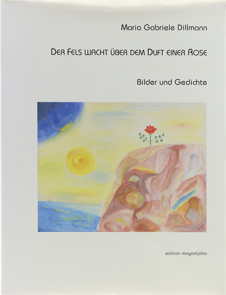Dillmann, Maria Gabriele. Der Fels wacht über dem Duft einer Rose. Bilder und Gedichte. Hrsg. mit Texten zu Vernissagen von Joachim Baumhauer. Obrigheim, Magadijoba, um 1991. Mit 2 farb. Abb. a. d. Vorsatz u. 56 (55 farb.) Abb. im Text. 124 S. 4°. Goldgepr. OLn. Der vordere Vorsatz a. d. Oberkante schwach gewellt, wenige Blatt im Eck minimal geknickt, sonst gutes Exemplar. (1020 Gr.)
