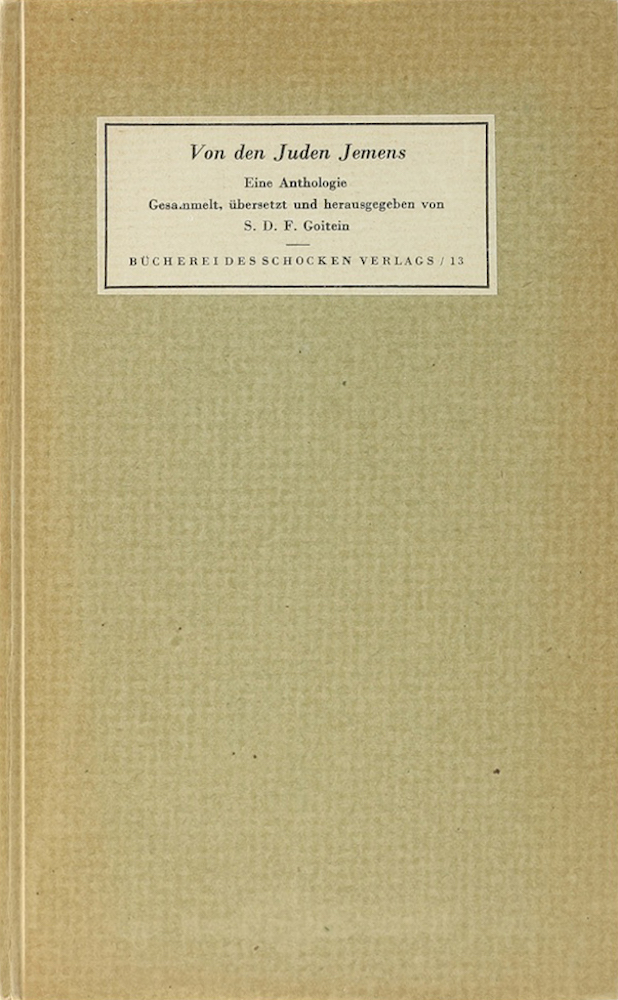 Goitein, S. D. F. Von den Juden Jemens. Eine Anthologie. Gesammelt, übers. u. hrsg. v. S. D. F. Goitein. 5.-7. Tsd. Berlin, Schocken, 1937. 107 S. u. 6 Bl. (Anz.). Kl. 8°. OPbd. mit montiertem Rücken- u. Deckelschild. Am unteren Kapital minimal bestoßen. Insgesamt leicht gebräunt, sonst gutes Exemplar. (150 Gr.) – Bücherei des Schocken Verlags, 13.