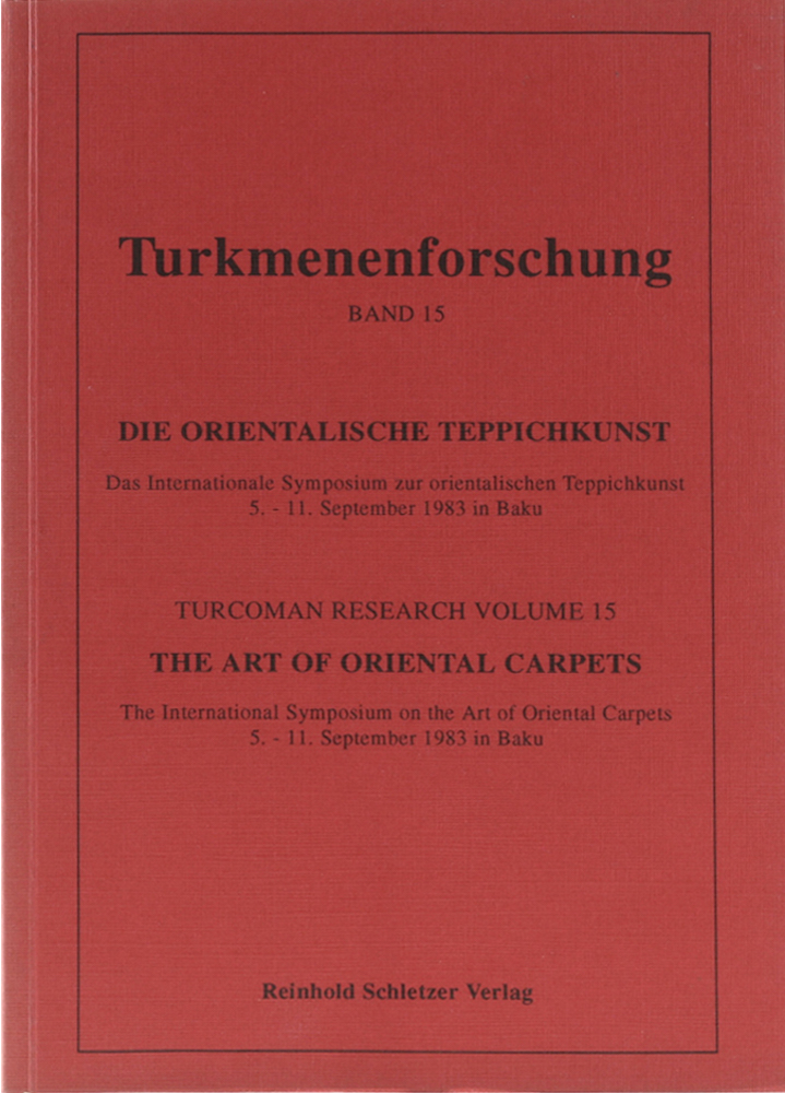 Die orientalische Teppichkunst. Materialien des Internationalen Symposiums zur orientalischen Teppichkunst. 5.-11. September 1983 in Baku. Übers. v. Reinhold Schletzer. Berlin, Schletzer, 1993. 218 S. u. 1 Bl. (Anz.). OBrosch. S. 217/18 doppelt, sonst gutes Exemplar. (260 Gr.) – Tukmenenforschung, 15. Texte tls. in Deutsch, Englisch u. Französisch.