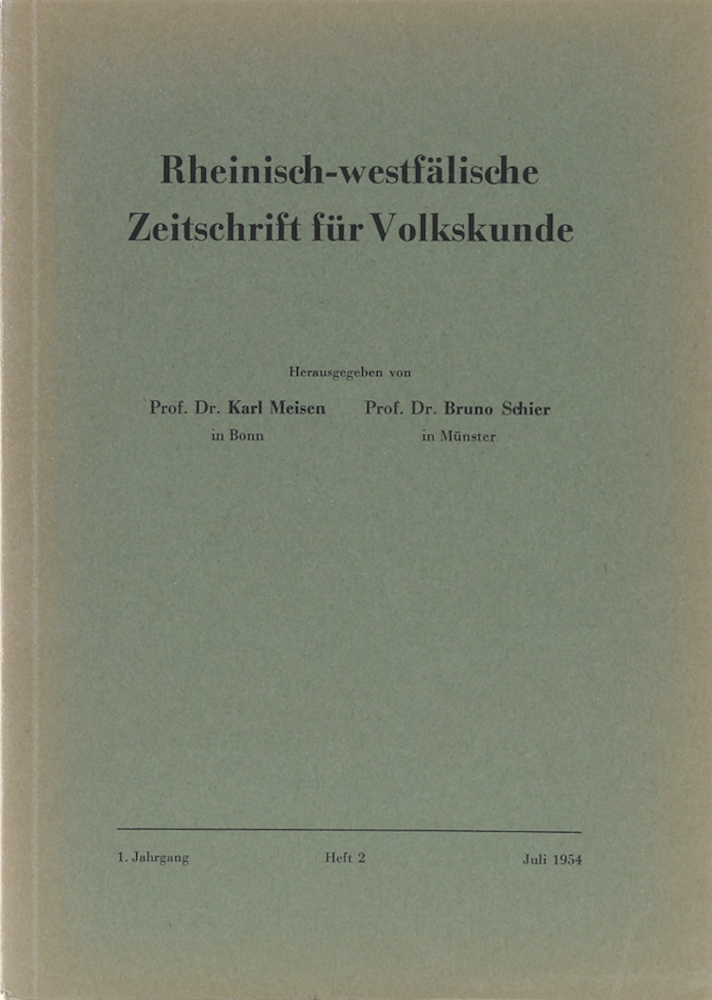 Bringemeier, Martha. Die Abendmahlskleidung der Frauen und Mädchen in der Schaumburger und Mindener Tracht. Bonn/Münster 1954. Mit 1 gefalteten, tls. farb. Karte, 1 Karte, 10 Abb. auf 8 Tafeln u. 1 mehrtlg. Illustr. S. 65-91. Gr. 8°. OBrosch. Papierbedingt gebräunt. Insgesamt tls. gering angerändert, sonst gutes Exemplar. – IN: Rheinisch-westfälische Zeitschrift für Volkskunde, 1. Jahrgang 1977, Heft 2. Mit weiteren Beiträgen über Sagen und Minnesang.