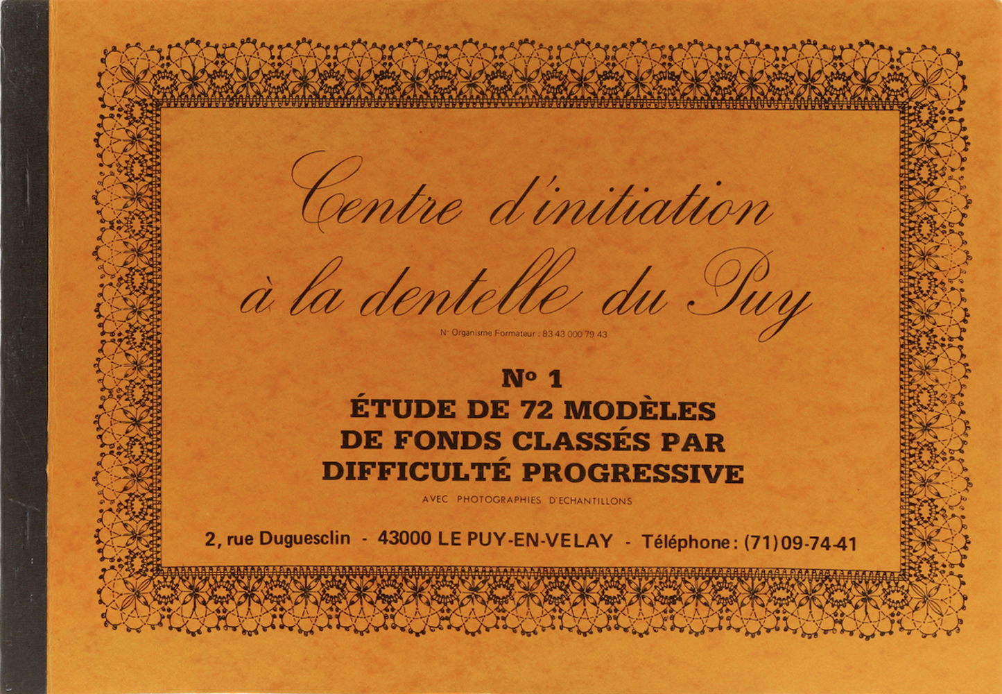 Fouriscot, Mick (Hrsg.). No 1. Étude de 72 modèles de fonds classés par difficulté progressive avec photographies d’echantillons. Le Puy-en-Velay, Centre d’Initiation à la Dentelle du Puy, 1981. Mit 12 Abb. auf 4 Tafeln u. Klöppelbriefen auf 6 Kartons. 1 Bl. Quer Folio. Illustr. OU. mit Papierrückenstreifen. Ein Eck minimal geknickt, sonst gutes Exemplar. (430 Gr.)