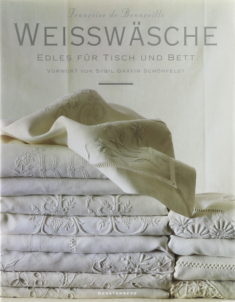 Bonneville, Francoise de. Weisswäsche. Edles für Tisch und Bett. Übers. v. Stefanie Schäfer. Vorwort v. Sybil Gräfin Schönfeldt. Hildesheim, Gerstenberg, 1998. Mit 257 (200 farb.) Abb. u. Illustr. 216 S. 4°. OLn. Gutes Exemplar mit Schutzumschlag. (1770 Gr.)