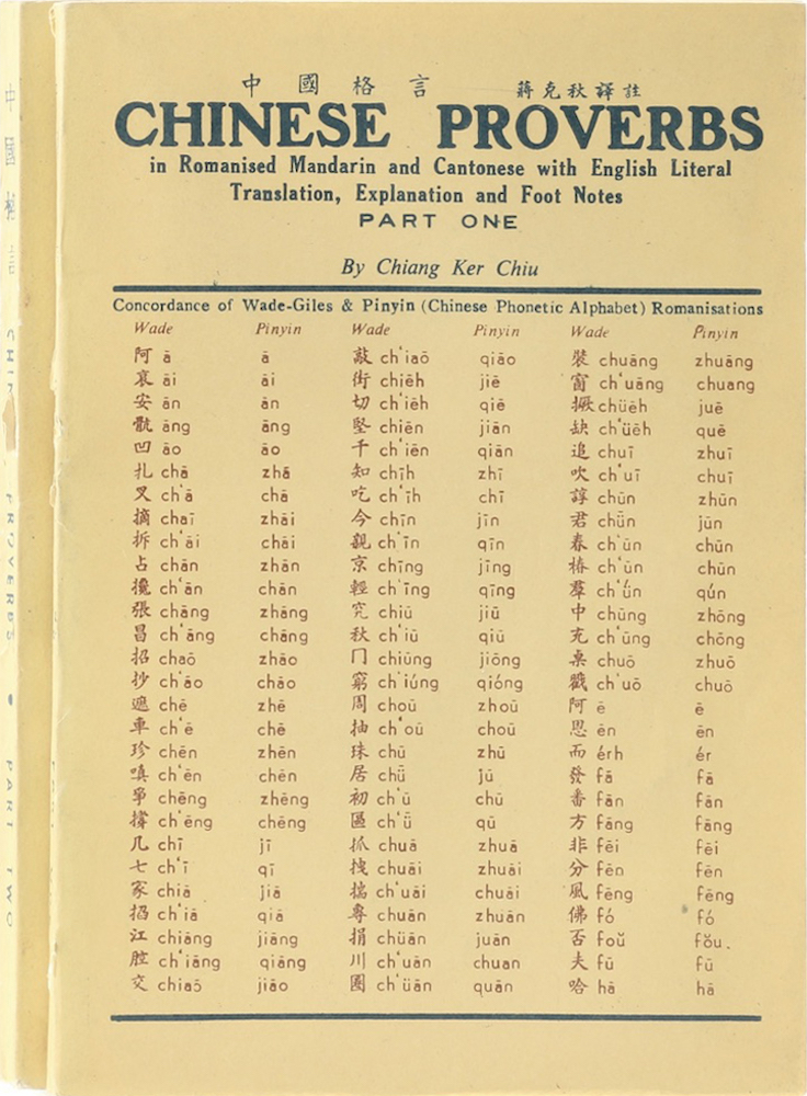 Chiang Ker Chiu. Chinese Proverbs in Romanised Mandarin and Cantonese with Engli…