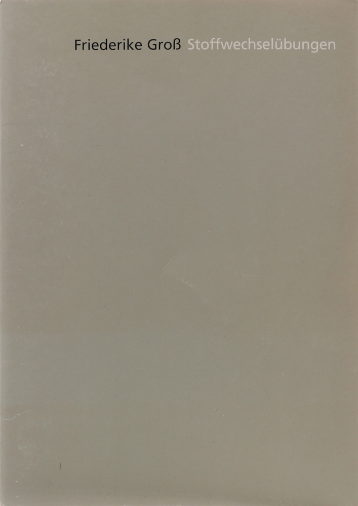 Groß, Friederike. Stoffwechselübungen. Esslingen, Heppächer, 2004. Mit 27 (26 farb.) Abb. 32 S. Gr. 8°. OU. Tls. durchgehend etwas geknickt. Seite 2 im Rand etwas defekt, sonst gutes Exemplar. (130 Gr.) Ausstellungskatalog.