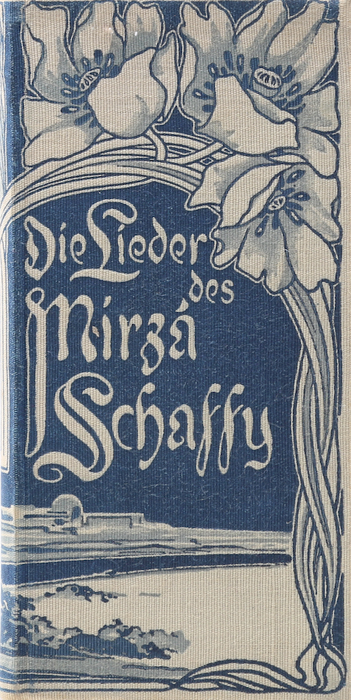 Die Lieder des Mirza-Schaffy mit einem Prolog von Friedrich Bodenstedt. 251.-255. Tsd. Berlin, Decker, 1909. Mit gemustertem Vorsatz u. zahlr. Zierstücken. XXIV, 200 S. Kl. 8°. Dekorativ illustr. OLn. Kopfgoldschnitt, ansonsten Farbschnitt. Die Kanten tls. ganz unwesentlich bestoßen. Zwei Blatt im Eck schwach geknickt, wenige Blatt ganz leicht angerändert, sonst gutes, nahezu fleckenfreies Exemplar. (220 Gr.)