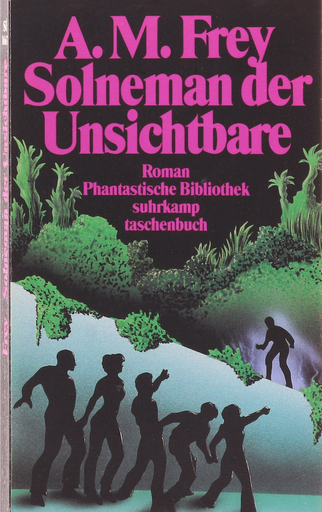 Frey, Alexander Moritz. Solneman der Unsichtbare. Roman. 1. Aufl. dieser Ausgabe. Frankfurt, Suhrkamp, 1990. 229 S., 1 Bl. u. 4 Bl. (Anz.). Kl. 8°. Farb. illustr. OBrosch. Der hintere Deckel schwach geknickt, tls. ganz schwach angerändert. Papierbedingt gebräunt, sonst gutes Exemplar. (160 Gr.) – Suhrkamp Taschenbuch, 1667. Phantastische Bibliothek, 241.
