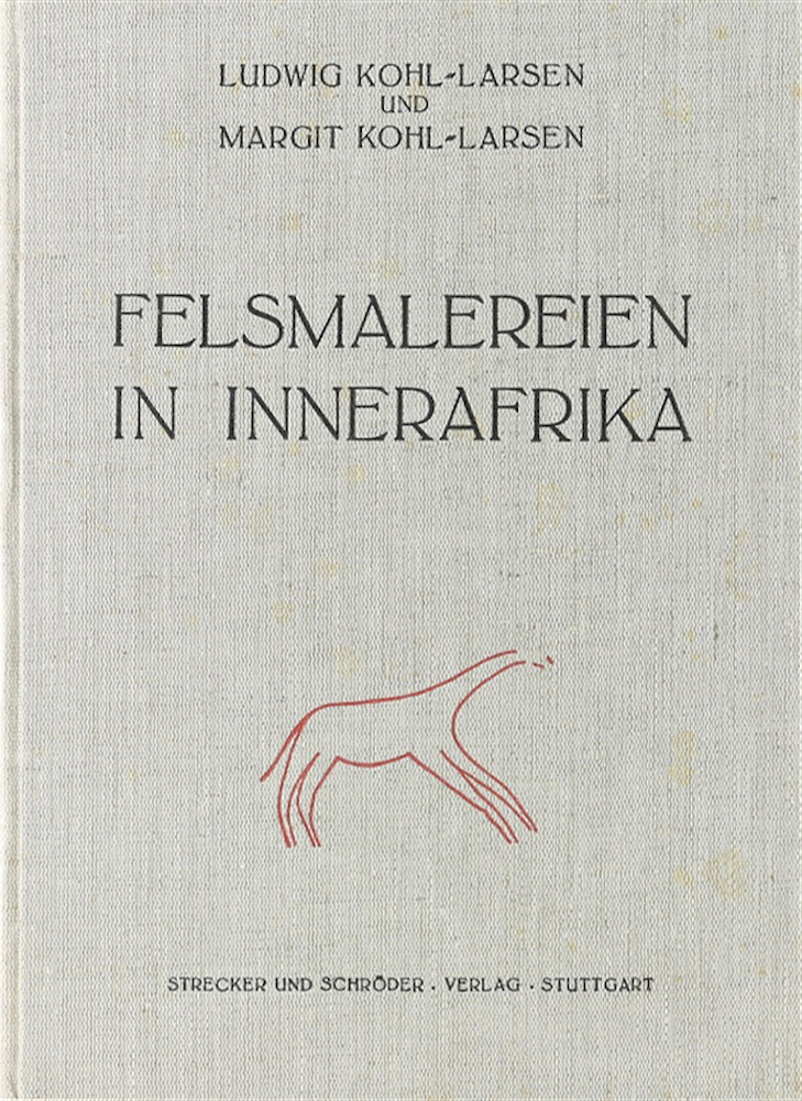 Kohl-Larsen, Ludwig und Margit Kohl-Larsen. Felsmalereien in Innerafrika. Ein Bildwerk geschichtlicher und vorgeschichtlicher Kunst. Stuttgart, Strecker und Schröder, 1938. Mit 3 Kartentafeln, 32 Abb. auf 16 Tafeln, 21 Illustr. auf 16 Tafeln u. 46 (richtig 47) Illustr. 93 S. u. 1 Bl. 4°. Illustr. OLn., dieses tls. schwach stockfleckig. (820 Gr.)