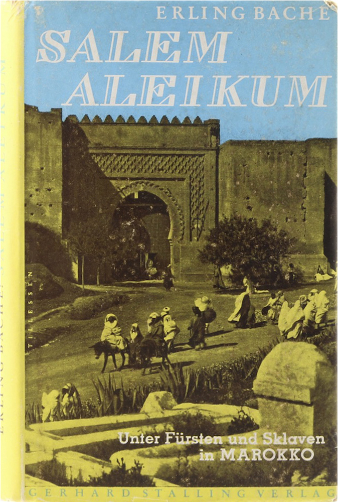 Bache, Erling. Salem aleikum. Unter Fürsten und Sklaven in Marokko. Übers. v. Luz B. Lorentzen. Oldenburg/Berlin, Stalling, 1942. Mit 25 Abb. auf 16 Tafeln. 270 S. u. 1 Bl. (Anz.). OPbd., dieser tls. etwas bestoßen, Kopfschnitt fleckig. Papierbedingt gebräunt. (390 Gr.)