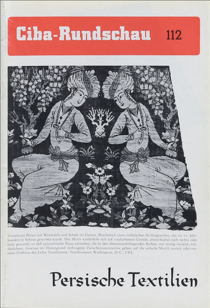 Ackermann, Phyllis. Persische Textilien. Basel, Ciba, 1953. Mit 23 Abb. u. 2 Illustr. S. 4099-4138. Gr. 8°. Illustr. OU. Im Rand tls. gering stockfleckig, sonst gutes Exemplar. – Ciba-Rundschau, 112. Enthält folgende Beiträge: Drei bezeichnende Meisterwerke; Die Anfänge der Textilkunst im iranischen Hochland; Die Wiedergeburt der persischen Kunst unter den Sassaniden; Die Herrschaft der Kalifen; Der Luxus der Sefewiden.