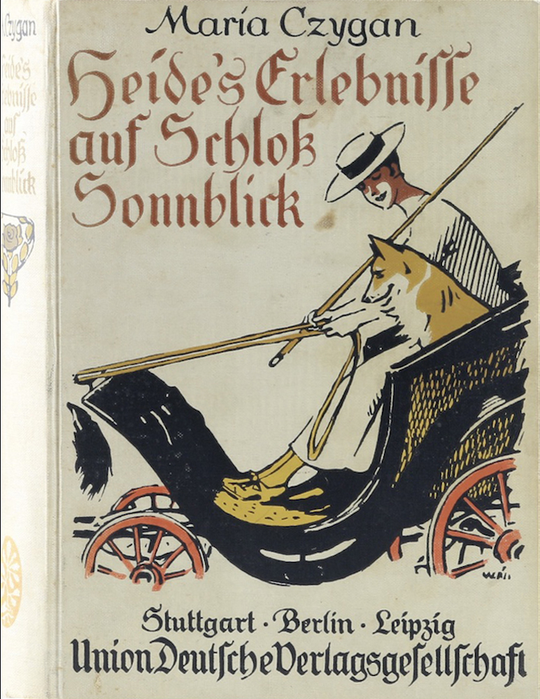 Czygan, Maria. Heides Erlebnisse auf Schloß Sonnblick. Eine Erzählung für junge Mädchen. 6. Aufl. Stuttgart u. a., Union Deutsche Verlagsgesellschaft, o. J. Mit Frontispiz, 3 Tafeln u. 1 Illustr. 2 Bl., 270 S. u. 1 Bl. (Anzeigen). Farb. illustr. OLn., dieses fleckig. An den Kapitalen etwas beschädigt, 1 Rückengelenk tls. angebrochen. Vorsatz im Falz wenig angeplatzt, handschriftliche Widmung a. Frontisp. (verso), papierbedingt gebräunt u. gelegentlich schwach fleckig, wenige Blatt eingerissen. Abb. v. Willy Planck.