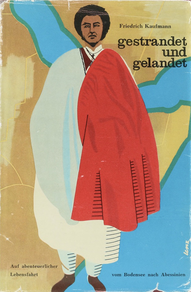 Kaufmann, Friedrich. Gestrandet und gelandet. Abenteuerliche Lebensfahrt vom Bodensee nach Abessinien. Zürich, Schweizer Druck- und Verlagshaus, (c 1957). Mit 27 Illustr. 326 S. OLn. Kopffarbschnitt. Am unteren Kapital durchgehend unwesentlich bestoßen. Tls. gering angerändert u. schwach fleckig. (560 Gr.)