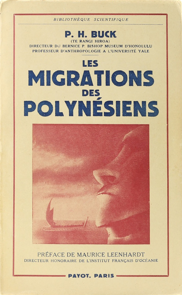 Buck, Peter H. Les migrations des Polynésiens. Les Vikings du soleil levant. Übers. v. Jacqueline Foulque-Villaret. Vorwort v. Maurice Leenhardt. Paris, Payot, 1952. Mit 3 (1 doppels.) Karten, 22 Abb. auf 16 Tafeln, 2 Illustr. u. 22 Zierstücken. 294 S., 4 Bl. (Anz.) u. 1 w. Bl. Gr. 8°. Illustr. OBrosch. Unbeschnitten. Broschur etwas gebräunt, angerändert u. leicht geknickt, an den Kapitalen etwas defekt u. mit kleiner Fehlstelle. Papierbedingt gebräunt, vereinzelt kleine Randeinrisse. (370 Gr.)