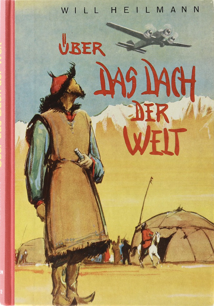 Heilmann, Will. Über das Dach der Welt. Mit der Ju 52 auf Erkundungsflug nach China. 11.-20. Tsd. Reutlingen, Enßlin & Laiblin, (c 1956). Mit 1 Karte a. d. Vorsatz u. 7 Illustr. 80 S. Farb. illustr. OHLn., dieses tls. minimal bestoßen. Kopffarbschnitt. (190 Gr.) Jugendbuch.
