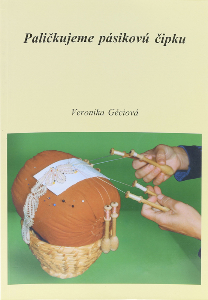 Géciová, Veronika. Palickujeme pásikovú cipku. Nitra, Selbstverlag, 2001. Mit 48 (17 farb.) Abb. u. zahlr. (2 farb.) Illustr. 63 S. 4°. Farb. illustr. OBrosch. Gutes Exemplar. (180 Gr.) Über Bänderspitze in der Slowakei mit Zusammenfassungen in Deutsch, Englisch, Französisch, Spanisch und Ungarisch.