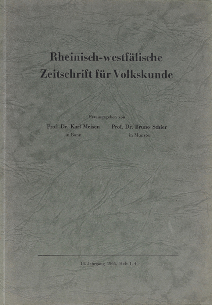 Bringemeier, Martha. Wandel der Mode im Zeitalter der Aufklärung. Kulturgeschichtliche Probleme der Kostümkunde. Bonn/Münster 1966. Mit 9 Abb. auf 8 Tafeln u. 1 Illustr. S. 5-60. Gr. 8°. OBrosch. Rücken etwas gebleicht. Broschur u. wenige Blatt im Eck leicht geknickt, sonst gutes Exemplar. – IN: Rheinisch-westfälische Zeitschrift für Volkskunde, 13. Jahrgang 1966, Heft 1-4. Weitere Beiträge u. a. über Vergißmeinnicht, Inventare, Kirmes, Volksbräuche u. Feiertage.