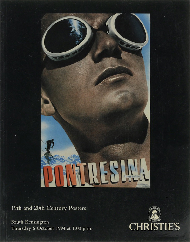 Christie’s. – 19th and 20th Century Posters. London, Christie’s, 1994. Mit ca. 327 (37 farb.) Abb. 60 S. u. 2 Bl. Kl. 4°. Farb. illustr. OBrosch., diese tls. minimal angerändert u. schwach geknickt, das untere Eck durchgehend. Auktionskatalog.