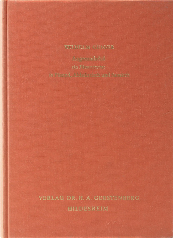 Geiger, Wilhelm. Aogemadaeca ein Parsentractat in Pazend, Altbaktrisch und Sanskrit herausgegeben, übersetzt, erklärt und mit Glossar versehen. Nachdruck der Ausgabe von 1878. Hildesheim, Gerstenberg, 1971. 1 Bl., VI, 160 S. Goldgepr. OLn. Gutes Exemplar. (320 Gr.)