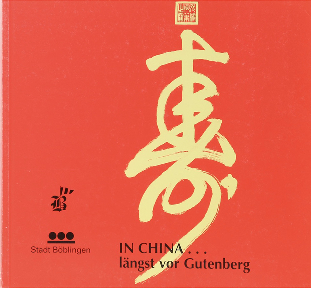 Balle, Jean-Luc, Jacques Goffin und Jean-Marie Simonet. In China… längst vor Gutenberg. Papier – Holzschnitt – Druckkunst. Mit Beiträgen v. Jean-Luc Balle, Jacques Goffin u. Jean-Marie Simonet. Hrsg. von Günter Scholz. Böblingen, Bauernkriegsmuseum, 1996. Mit 14 farb. Abb., sowie 45 Abb. u. Illustr. 88 S. Quer 8°. Farb. illustr. OBrosch., diese minimal angerändert u. berieben, sonst gutes Exemplar. (300 Gr.) – Böblinger Museumsschriften, 16. Ausstellungskatalog.