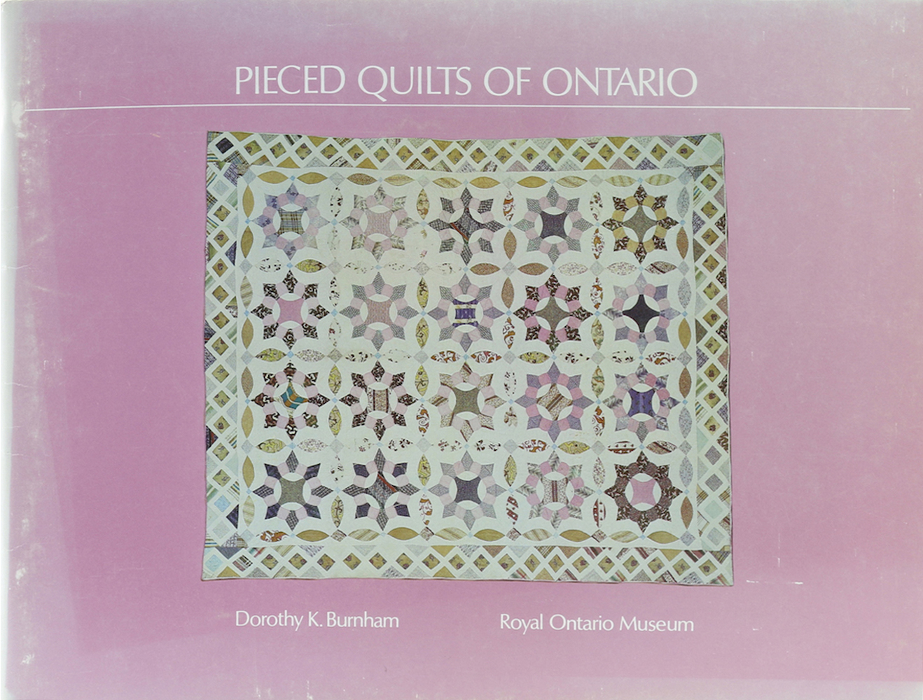 Burnham, Dorothy K. Pieced Quilts of Ontario. Toronto, Royal Ontario Museum, 1978. Mit 32 (3 farb.) Abb. u. 30, tls. mehrtlg. Illustr. 64 S. Quer Kl. 4°. Farb. illustr. OU., dieser etwas berieben u. tls. gebleicht, sonst gutes Exemplar.