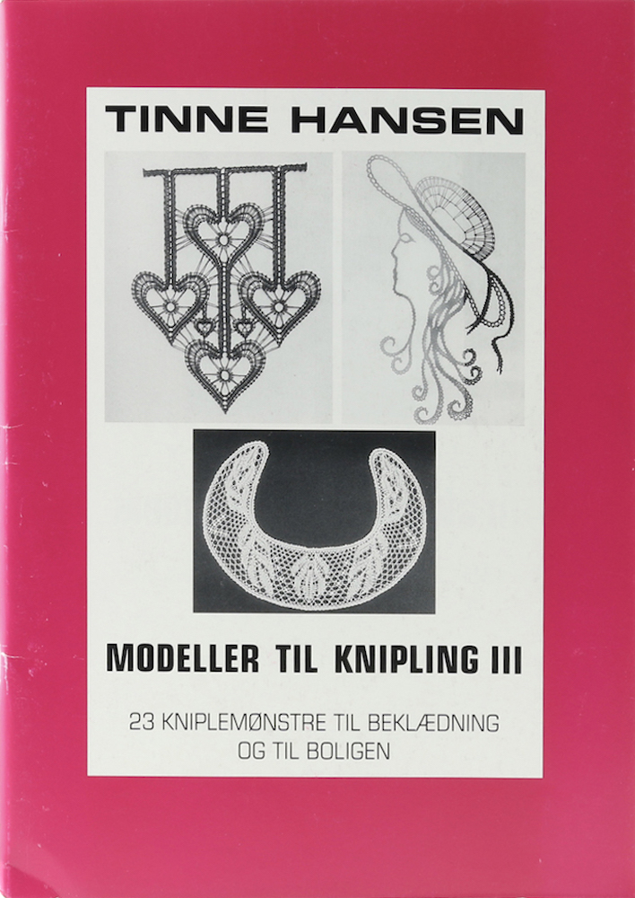 Hansen, Tinne. Modeller til Knipling III. 23 Kniplemonstre til Beklaedning og til Boligen. Rodding, Selbstverlag, 1993. Mit 24 Abb. u. zahlr. Illustr. 48 S. 4°. Illustr. OU. Im Rücken durchgehend schwach geknickt, sonst gutes Exemplar. (230 Gr.)
