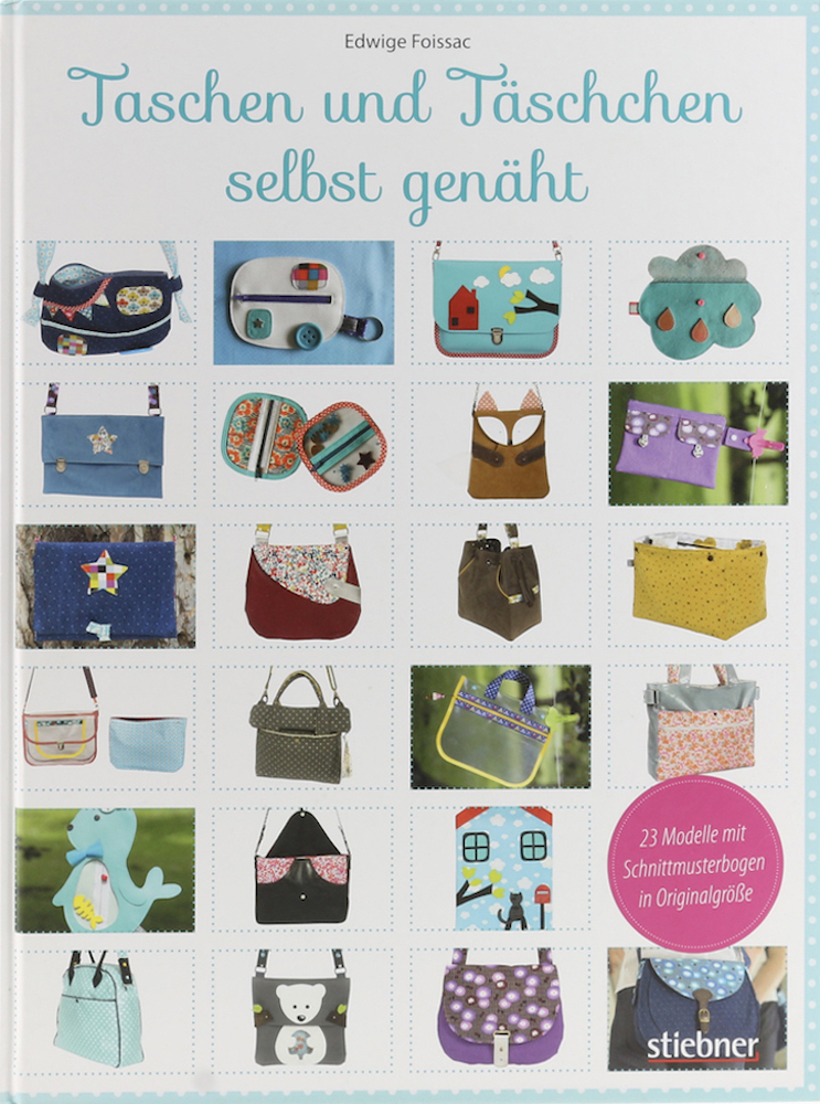 Foissach, Edwige. Taschen und Täschchen selbst genäht. 23 Modelle mit Schnittmusterbogen in Originalgröße. München, Stiebner, (c 2015). Mit 2 mehrfach gefalteten, doppelseitig bedruckten farb. Arbeitsbögen, überaus zahlr. farb. Abb. u. einigen Illustr. 144 S. 4°. Farb. illustr. OPbd. Gutes Exemplar.