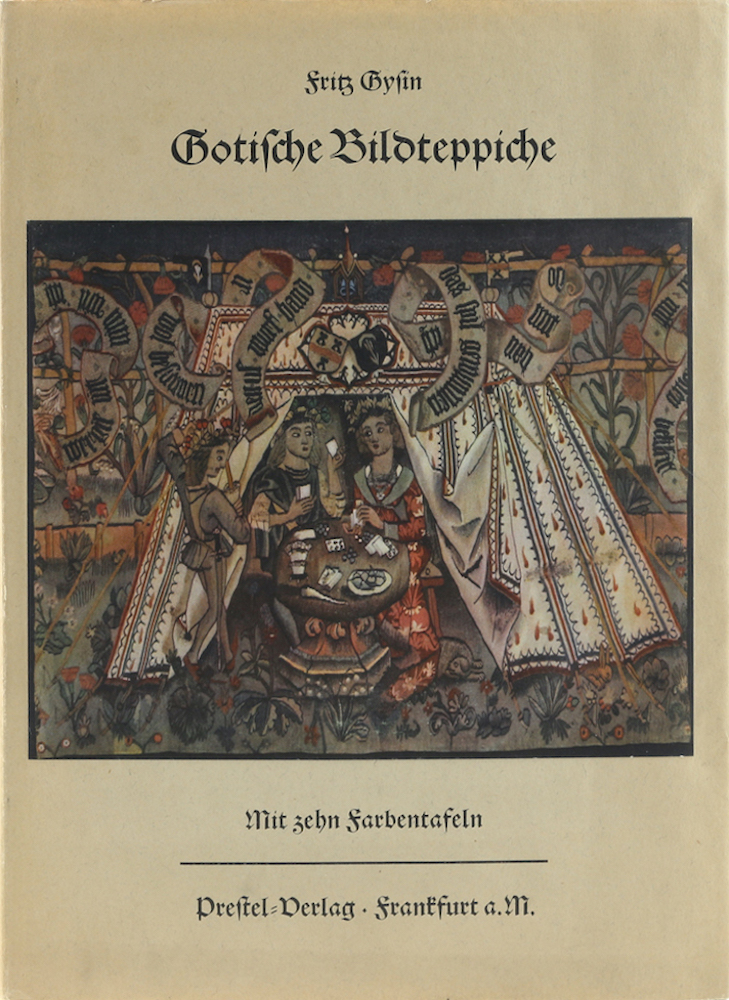 Gysin, Fritz. Gotische Bildteppiche der Schweiz. Frankfurt, Prestel, o. J. Mit 4 Abb. auf 2 gefalteten Tafeln u. 11 farb. Abb. auf 12 Tafeln. 14 S. u. 1 Bl. 4°. OPbd. Titel u. Rückentitel goldgeprägt. Der Schutzumschlag mit leichten Gebrauchsspuren u. montierter farb. Abb. (390 Gr.)