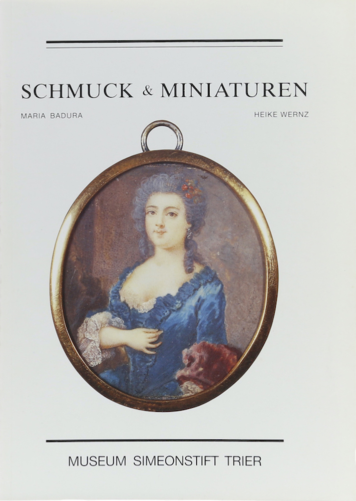 Badura, Maria und Heike Wernz. Schmuck & Miniaturen. Trier, Städtisches Museum Simeonstift, 1990. Mit 1 Karte u. 169 (16 farb.) Abb. 86 S. u. 1 w. Bl. 4°. Farb. illustr. OBrosch. Gutes Exemplar. (400 Gr.)