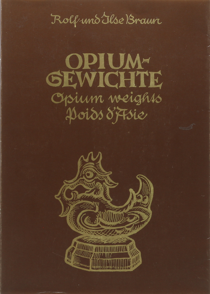 Braun, Rolf und Ilse. Opium-Gewichte. Opium weights. Poinds d’Asie. Landau, Selbstverlag, 1983. Mit 1 Karte, 1 Titelillustr., ca. 643 (5 mehrtlg.) Abb. u. 98 Illustr. 240 S. 4°. Engl. OBrosch., der Umschlag etwas angerändert, berieben u. geknickt, der vordere Deckel u. die ersten Blatt im oberen Rand ganz unwesentlich geknickt, sonst gutes Exemplar. (960 Gr.) Mit handschriftlicher Widmung der Autoren.