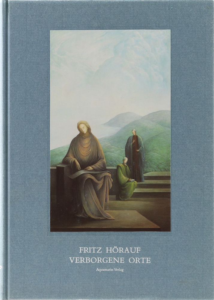 Hörauf, Fritz. Verborgene Orte. Bilder, Plastiken, Architektur 1977-1993. Mit Beiträgen von David Mason Heminway, Tamara Ralis und Jochen Winter. 1. Aufl. Grafing, Aquamarin, 1993. Mit 45 farb. Tafeln u. 36 (1 farb.) Abb. 55 S. u. 1 Bl. 4°. OPbd. mit montierter farb. Abb. Die Kanten tls. ganz minimal bestoßen, sonst gutes Exemplar. (970 Gr.) Nr. 74 von 300 handschriftlich nummerierten u. signierten Exemplaren. Mit einer lose beigelegten, handschriftlich nummerierten, betitelten, signierten u. datierten Aquatintaradierung, sowie einer handschriftlichen Widmung des Künstlers auf der Titelrückseite.