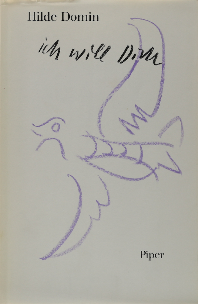 Domin, Hilde. Ich will dich. Gedichte. 2. Aufl. München, Piper, 1973. 46 S. u. 1 Bl. 8°. OLn. mit Schutzumschlag, dieser u. der obere Schnitt etwas angerändert, sonst gutes Exemplar. (150 Gr.) Mit Signatur der Autorin auf dem Vorsatz.
