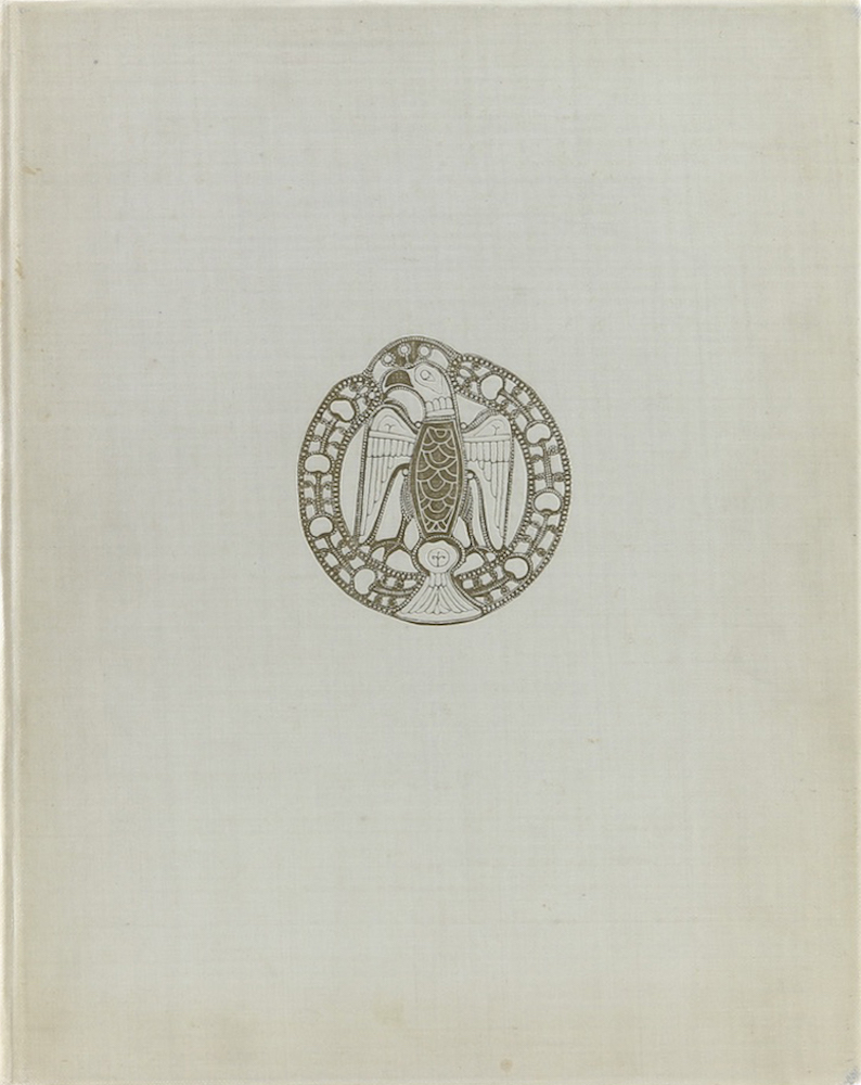 Falke, Otto von. Der Mainzer Goldschmuck der Kaiserin Gisela. Berlin, Verlag für Kunstwissenschaft, 1913. Mit montierter, farb. Abb. auf 1 Tafel, 7 Tafeln, 1 Titelillustr. u. 29 Abb. im Text. 4 Bl., 30 S. u. 1 Bl. Kl. Folio. Illustr., goldgeprägtes OLn. Kopfgoldschnitt. Einband gering fleckig u. tls. unbedeutend beschabt, Kanten gelegentlich etwas bestoßen. Stempel a. d. Vorsatz, tls. leicht angerändert, unteres Eck schwach bestoßen. Lipperheide (Ng 22). 1 von 1100 Exemplaren.
