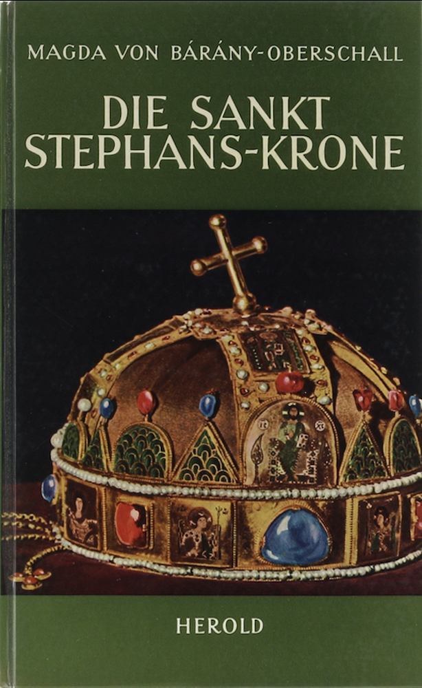 Bárány, Magda von. Die Sankt Stephans-Krone und die Insignien des Königreiches Ungarn. Wien, Herold, (c 1961). Mit 34 Abb. auf 32 Tafeln. 80 S. Farb. illustr. OPbd., dieser tls. leicht berieben u. bestoßen. – Sammlung der Kronen des Hauses Österreich, III.