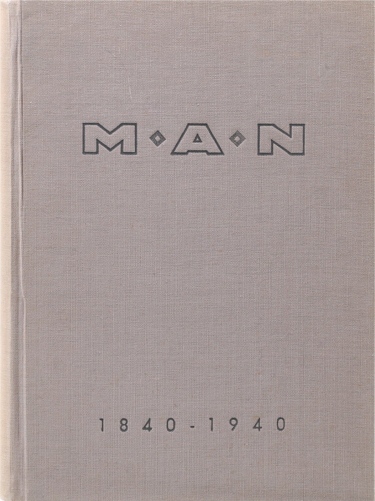 Büchner, Fritz. Hundert Jahre Geschichte der Maschinenfabrik Augsburg-Nürnberg (MAN 1840-1940). (Augsburg/Nürnberg 1940). Mit 12 Tafeln, 9 Illustr. u. 8 Diagrammen. 219 S., 9 Bl. u. 1 w. Bl. 4°. OLn., dieses u. d. Kopfschnitt unbedeutend fleckig, die Oberkante schwach bestoßen. 4 Blatt im weißen Rand defekt. (1290 Gr.)