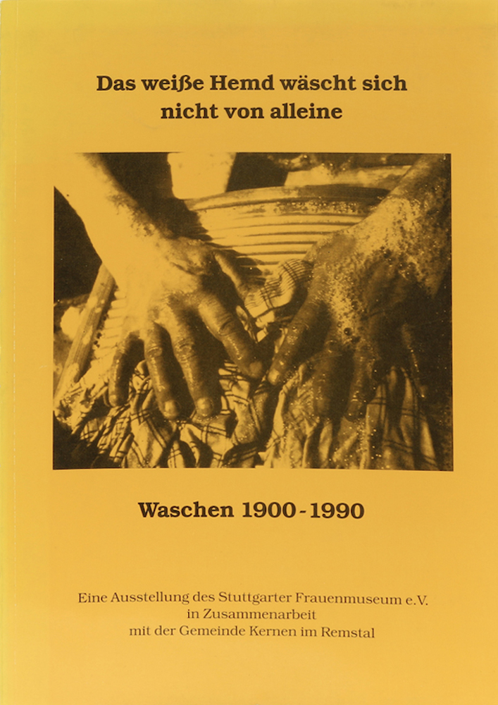 Das weiße Hemd wäscht sich nicht von alleine. Waschen 1900-1990. Stuttgart, Stuttgarter Frauenmuseum, 1991. Mit 11 Abb., 1 Illustr., 1 dreiseitigen Faksimile, 2 Diagrammen u. 1 Tabelle. 77 S. u. 1 w. Bl. 4°. Illustr. OBrosch. Rücken etwas gebleicht u. leicht berieben. Das letzte Bl. schwach fleckig. (270 Gr.) Ausstellungskatalog.
